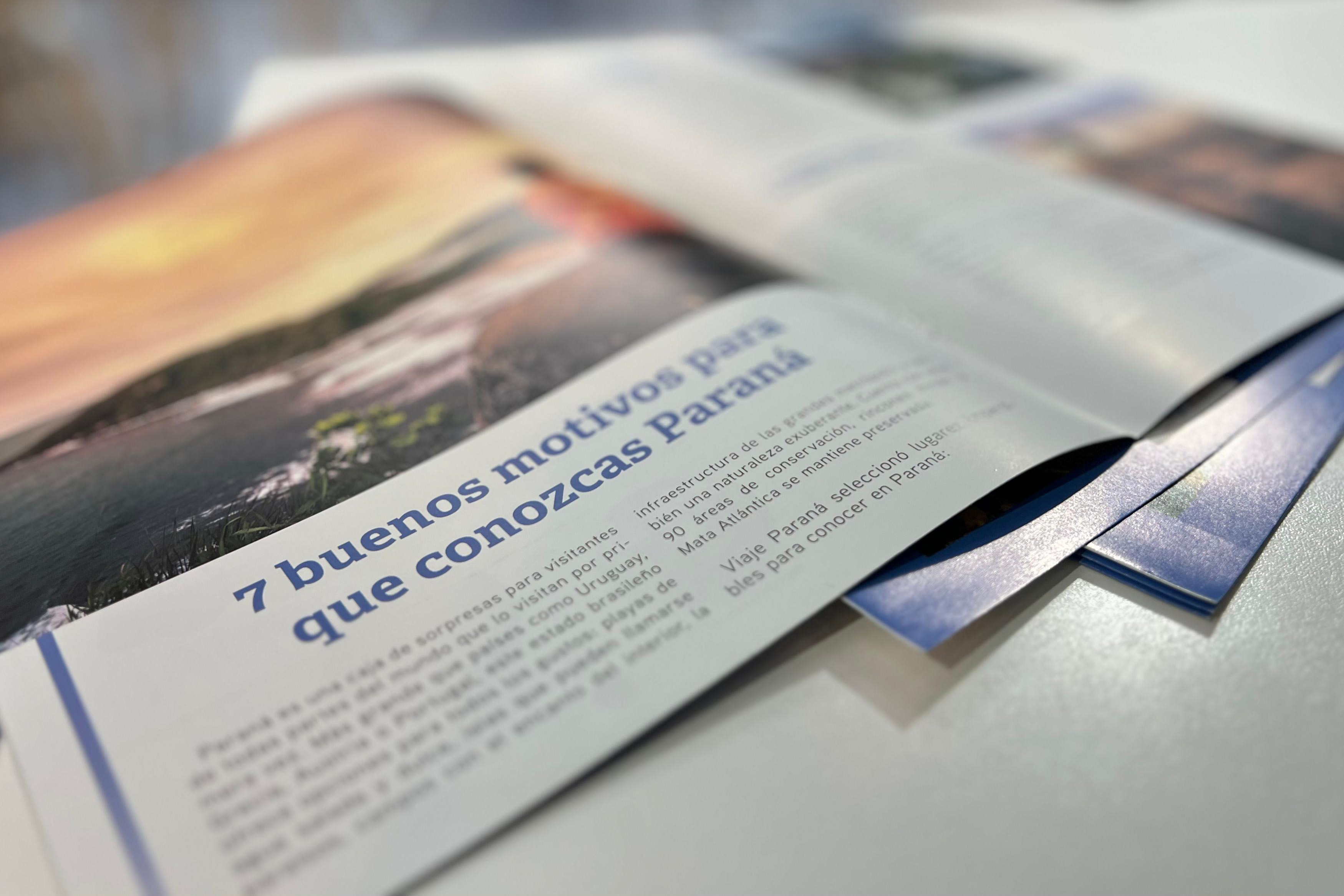 Para a promoção do Paraná como destino turístico, além da participação dos coexpositores, o Viaje Paraná distribui materiais informativos traduzidos para o espanhol.