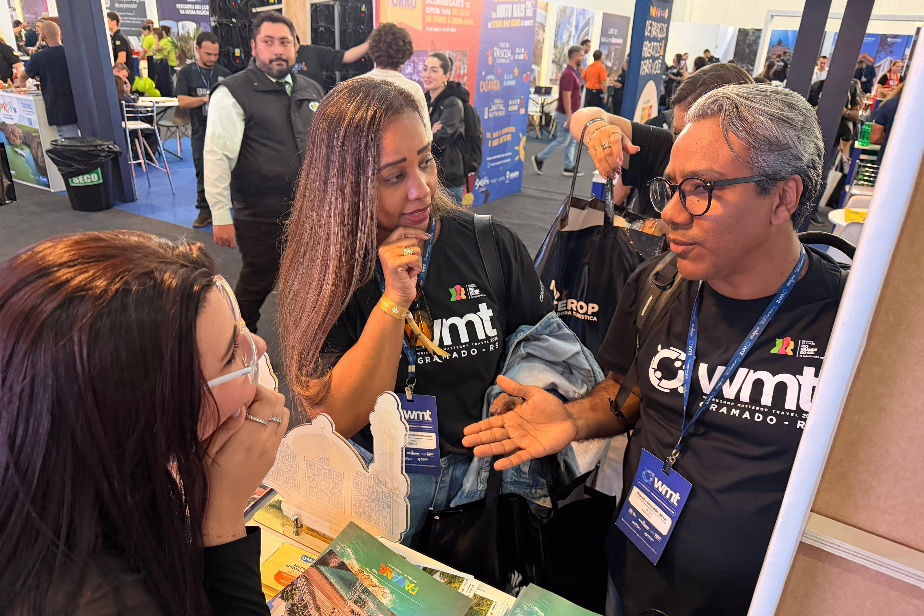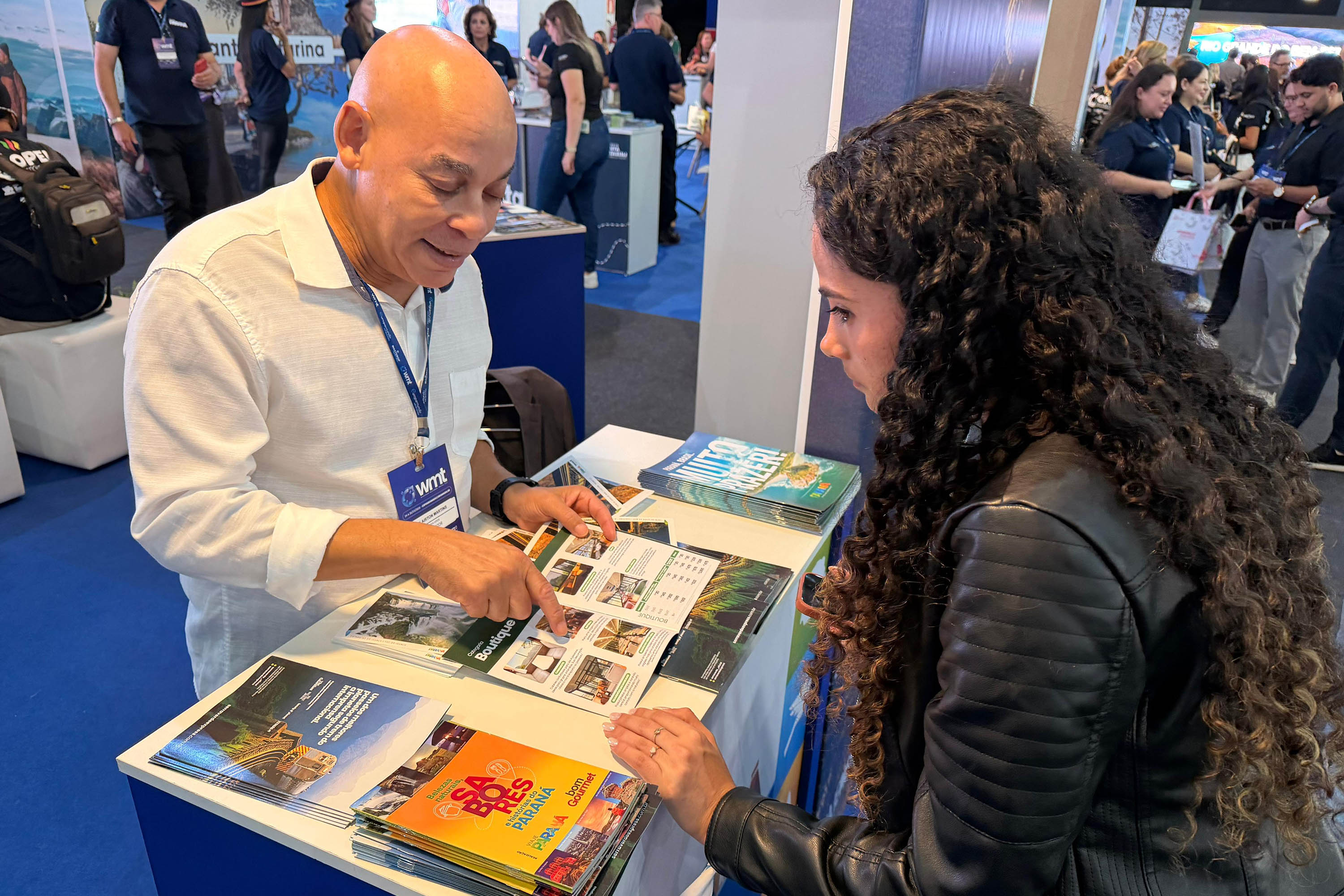 Além do balcão para negócios, eles contam com um espaço onde podem realizar atendimentos particulares e capacitações menores com o público interessado (com horário marcado). É outra forma de mostrar oportunidades ao mercado, incluindo mais produtos paranaenses nos portfólios de vendas dos agentes e das empresas. “É uma honra e uma oportunidade muito grande de promover o município, a mesquita e alguns detalhes do Turismo Religioso no Estado”, disse Hola El Kadri, gerente de recepção da Mesquita Omar Ibn Al-Khattab, um dos maiores templos dedicados a fé islâmica no continente, localizada em Foz do Iguaçu.