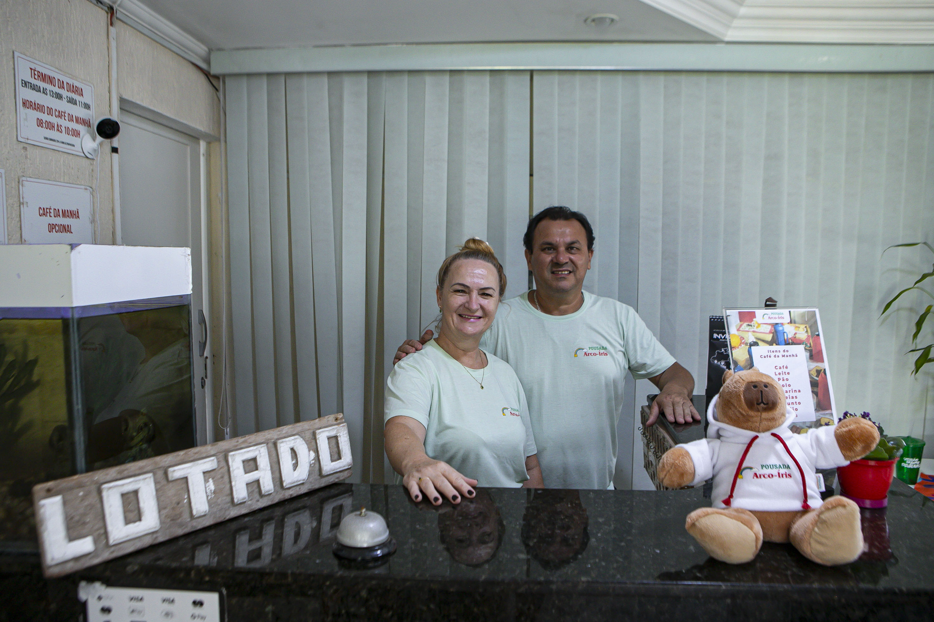 Zelomar administra a pousada ao lado do marido Silvio Cesar há mais de 20 anos. O espaço conta com 13 apartamentos, todos suítes. O diferencial do atendimento é o café da manhã, servido em bandejas diretamente no quarto, modelo adotado durante a pandemia e aprovado pelos hóspedes. “Todos os apartamentos são completos, com frigobar, TV e ar-condicionado. O serviço já inclui roupa de cama, toalhas de banho e café da manhã, funcionando no padrão de hotelaria”, explica.
