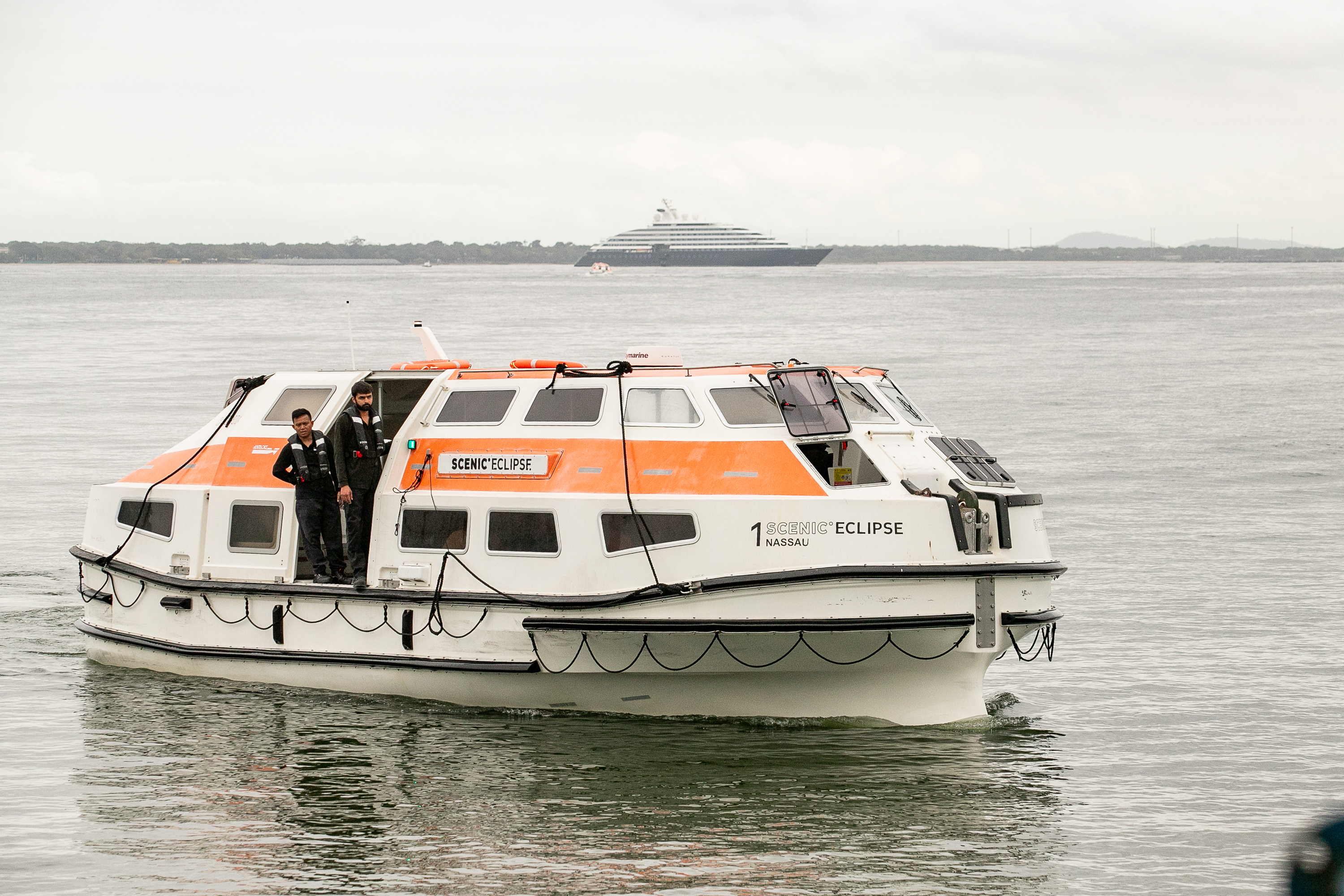 Turistas canadenses, norte-americanos, russos, ingleses, brasileiros e um peruano conheceram as belezas da Ilha do Mel. Eles chegaram ao Litoral paranaense a bordo do navio de luxo Scenic Eclipse, na manhã desta quinta-feira (16). Esta é a segunda vez que a embarcação ancora na Baía de Paranaguá.