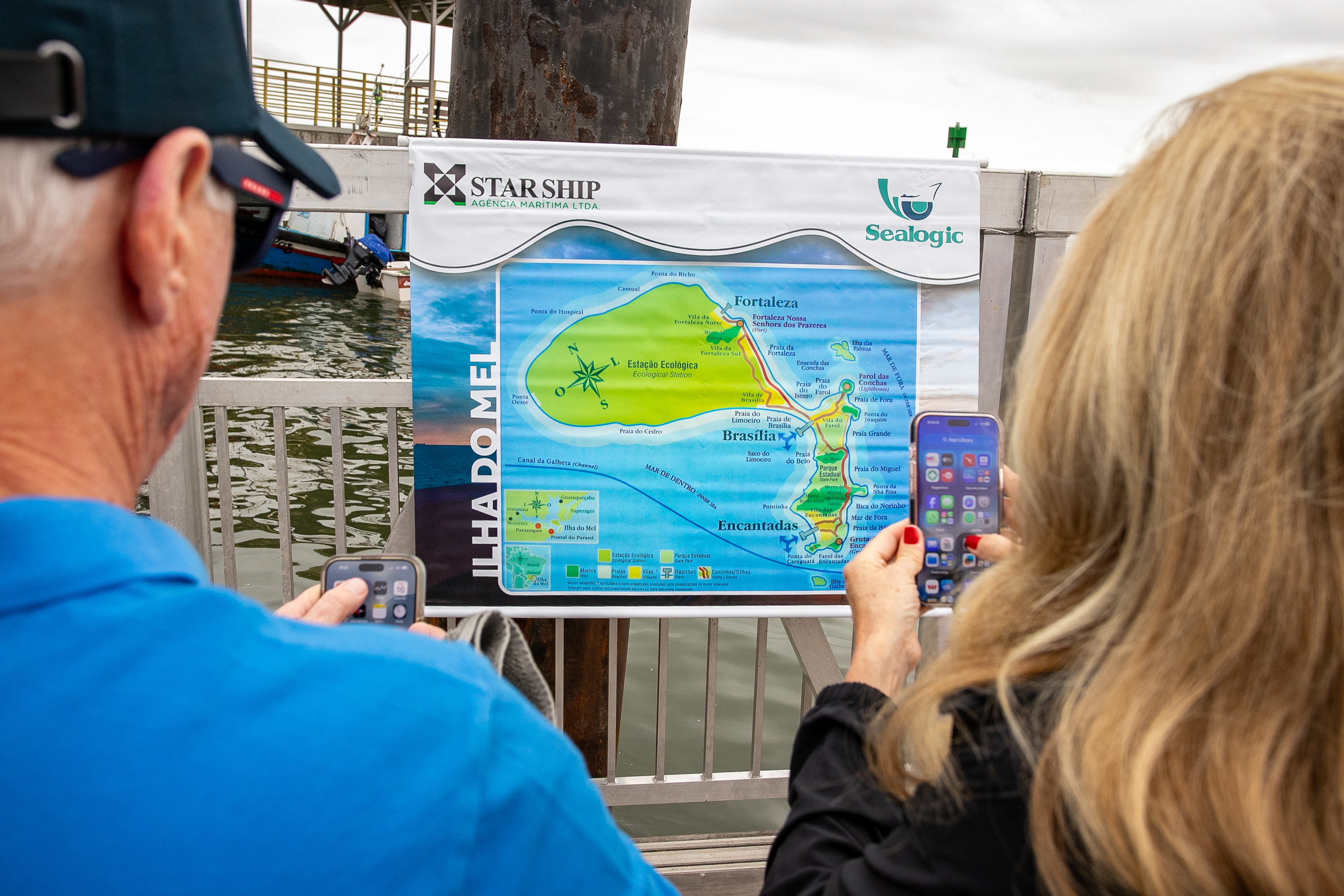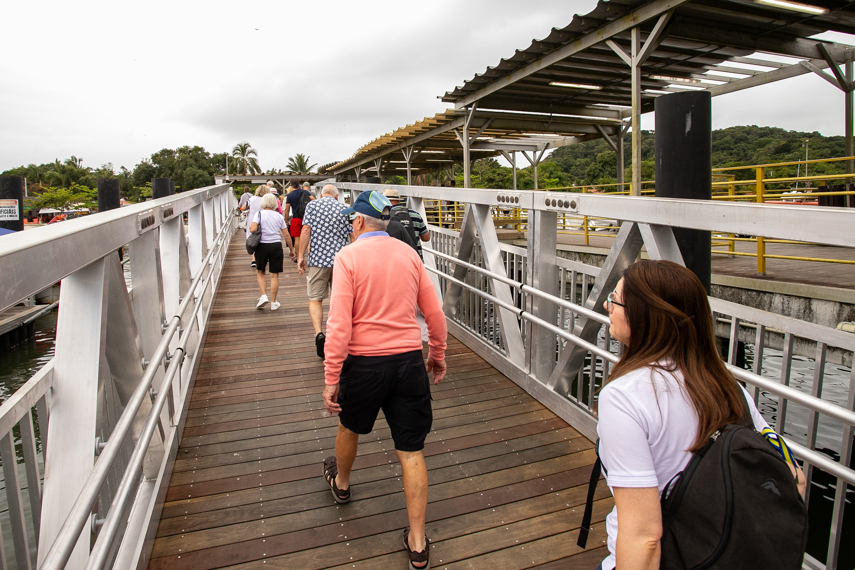 Turistas de cruzeiro internacional destacam estrutura no desembarque na Ilha do Mel 17/10/2025 - 10:39
