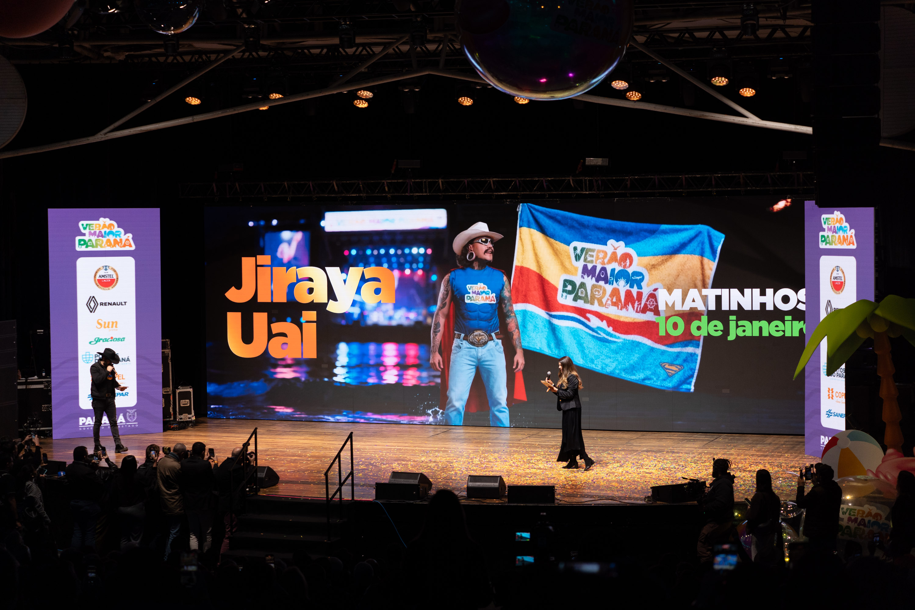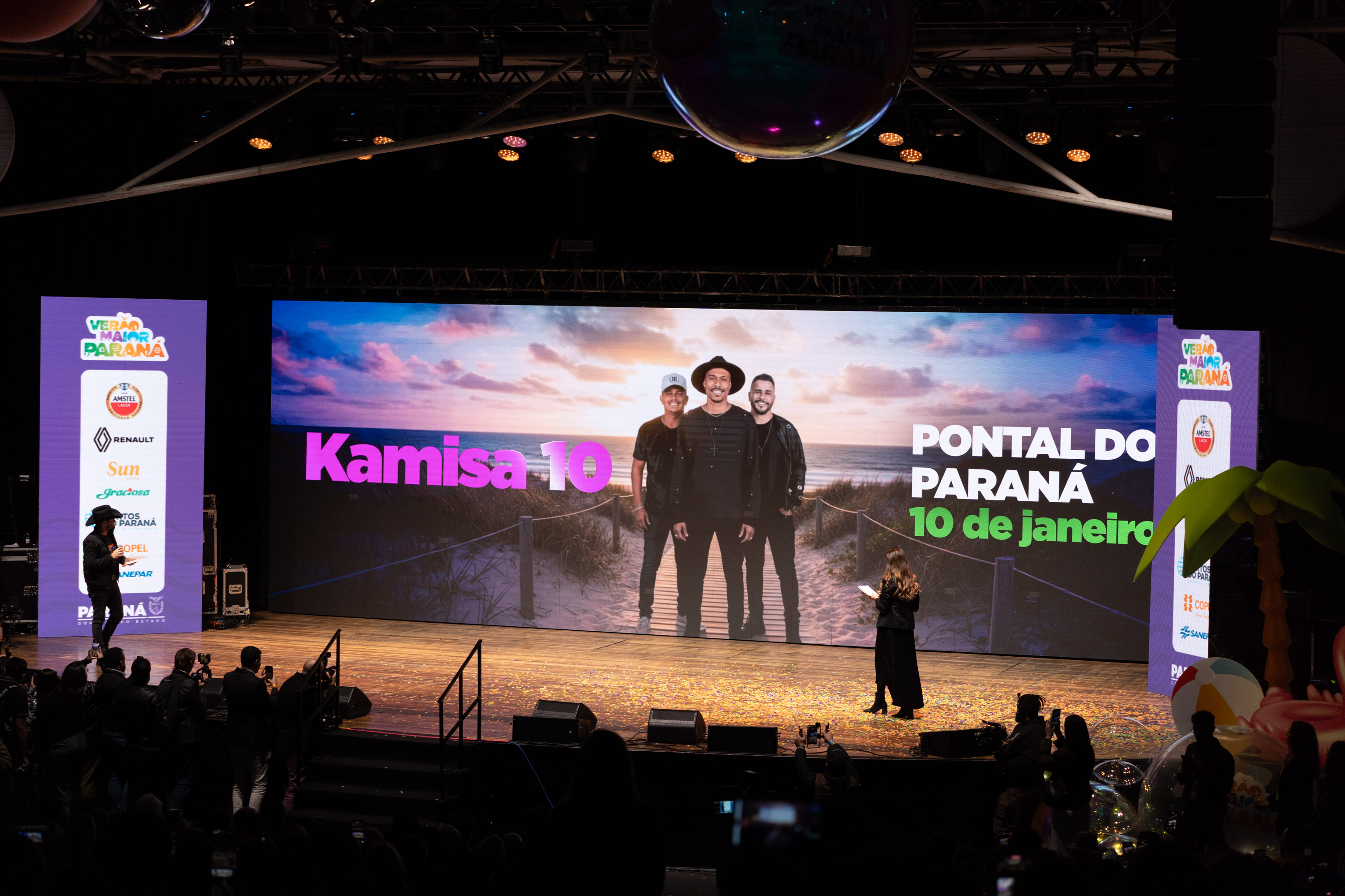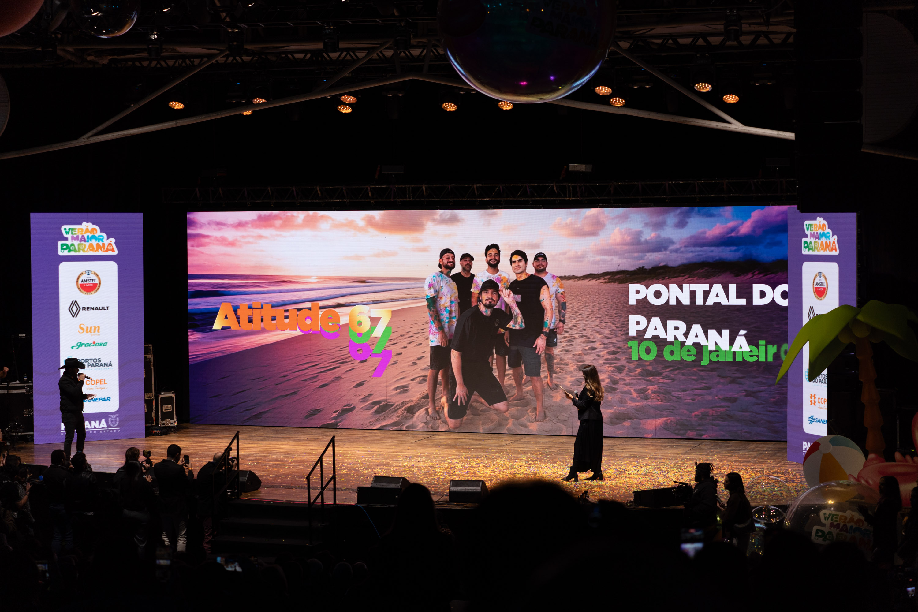 O Governo do Paraná anunciou nesta terça-feira (21) os nomes das atrações do Verão Maior Paraná 2026. São cinco finais de semana seguidos de espetáculos gratuitos, de 9 de janeiro a 8 de fevereiro. Entre as novidades estão shows nas quintas-feiras, atrações internacionais e palcos que devem ser maiores do que no ano passado. Os shows acontecerão nas praias de Matinhos e Pontal do Paraná e terão transmissão do SBT, Band, TVCI, Banda B e TV Paraná Turismo para todo o Brasil.